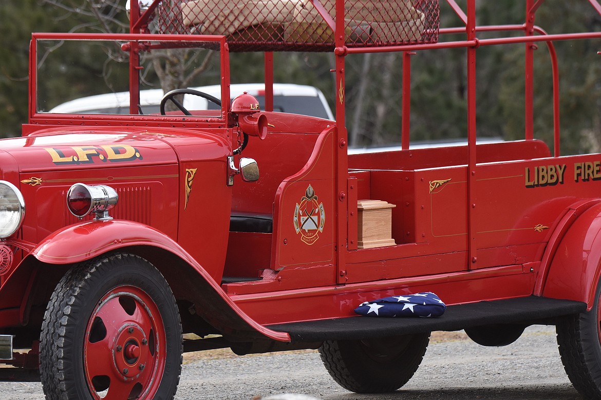 An urn containing the ashes of Dr. Richard S. “Dick” Wood and an U.S. flag, representing his service to our country in the Navy, rest on Libby Volunteer Fire Department's 1932 Chevrolet Fire Truck Tuesday, Feb. 17, 2026, at the City of Libby Cemetery. Wood was a member of the LVFD from 1973 to 1996. Services were held for Wood following his death on Feb. 10, 2026. Wood was a pillar in the community, serving countless patients at his dental practice, coached Little League, and supported many in their time of need.