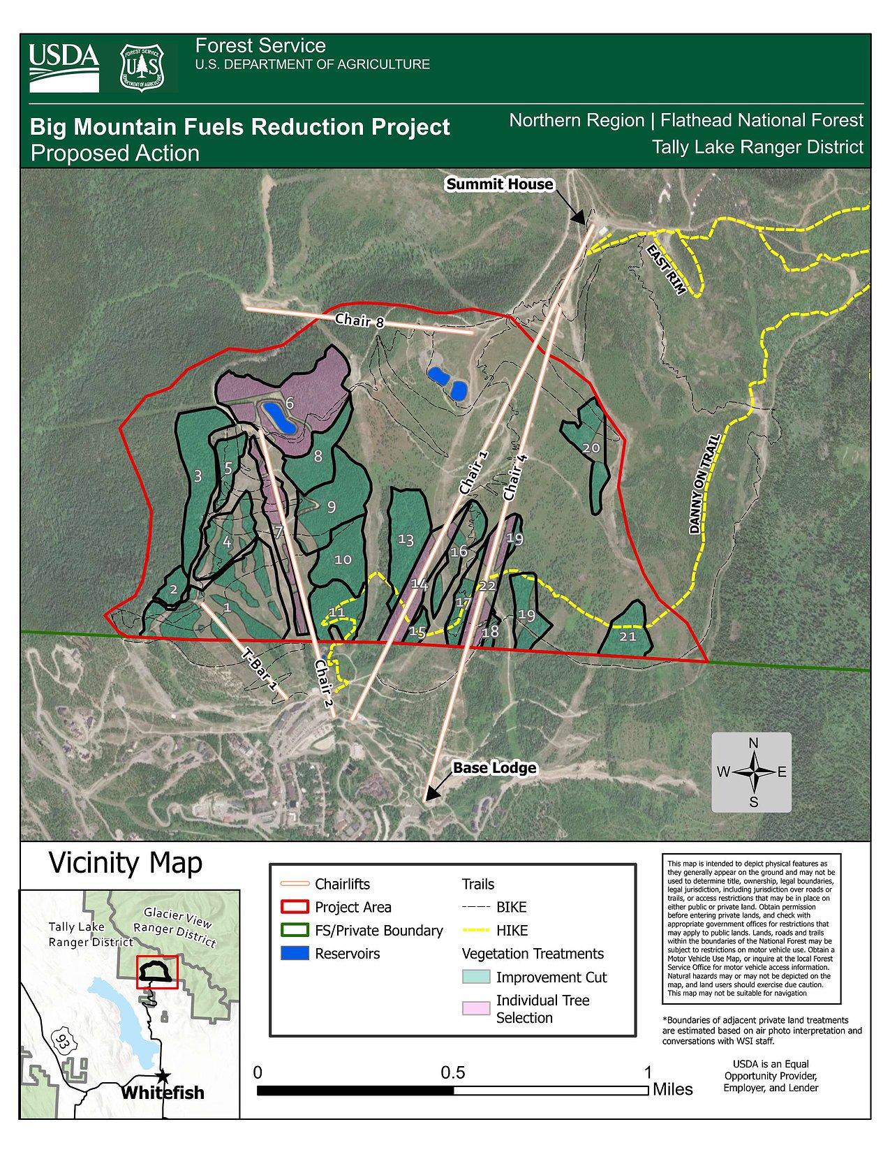 A map of proposed treatment for the Big Mountain Fuels Reduction Project, to be conducted by the Flathead National Forest at Whitefish Mountain Resort in summer 2026.