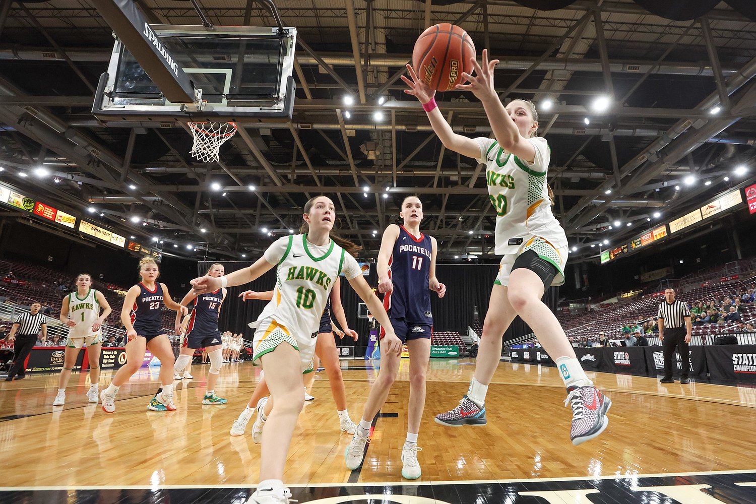On Friday, it was Lakeland that found itself in foul trouble as the top-seeded Hawks fell to fourth-seeded and defending champion Pocatello 52-45 in the state 5A semifinals at the Ford Idaho Center on Friday afternoon.