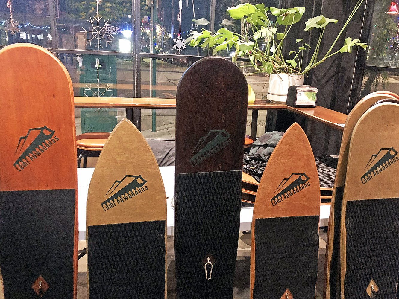 He said a Lumi Powboard can be used anywhere from the backyard to the backcountry, given there are about 5 inches of powder to make it work. Since they have no bindings, and no edges, they are not for resort use.