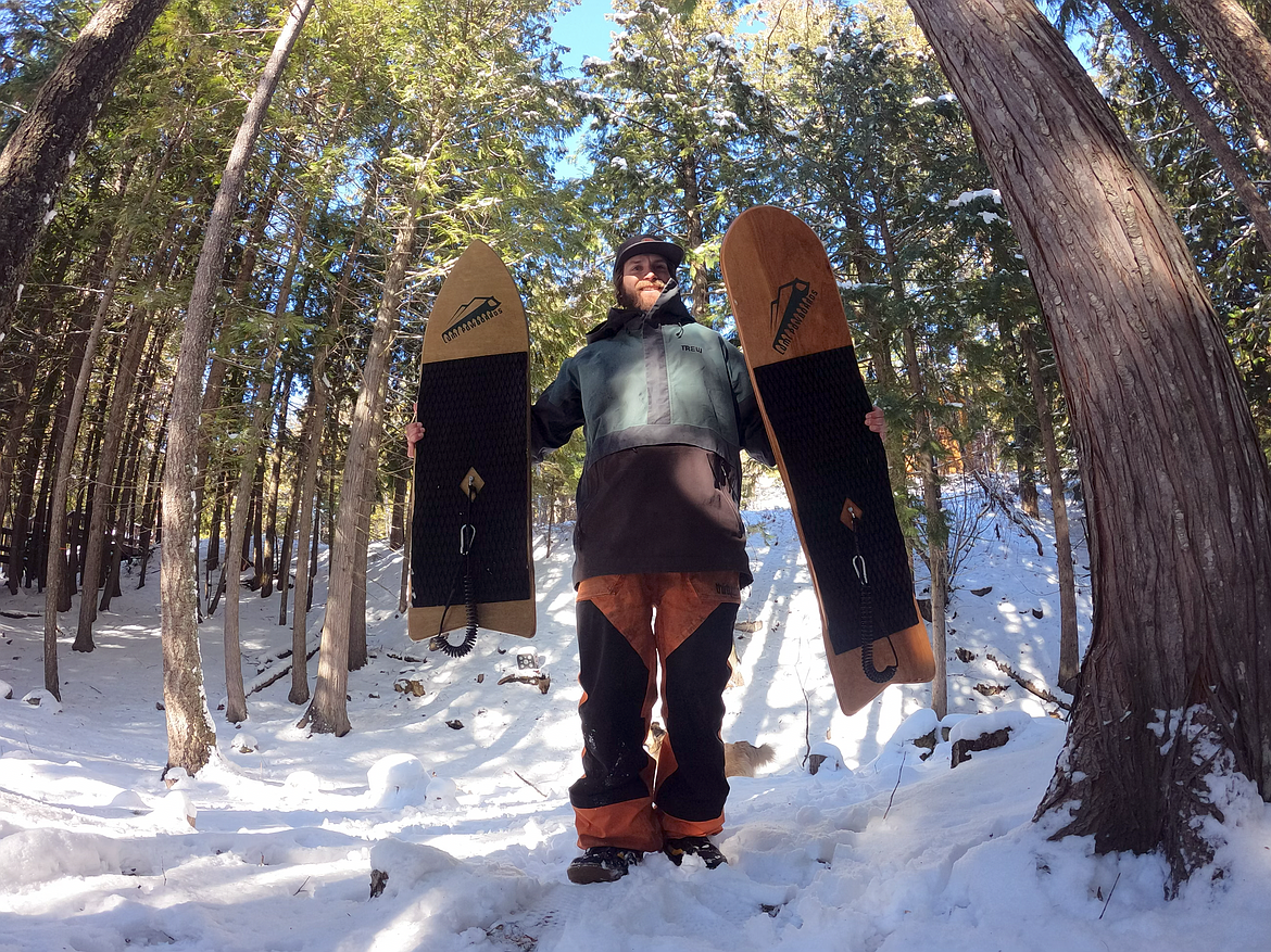 Sprau and his wife, Rebecca, are a couple of snow bums who moved to Whitefish from Colorado eight years ago. Last summer, he started making Lumi Powboards. His business is named after his dog, Lumi, the Finnish word for snow.