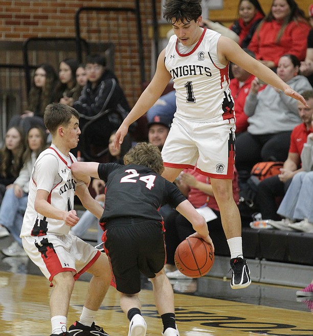 COEUR d’ALENE — Late in the first half, the top-seeded Lakeside Knights held just a 27-24 lead over the second-seeded Wallace Miners in the championship game of the 2A District 1 boys basketball tournament.