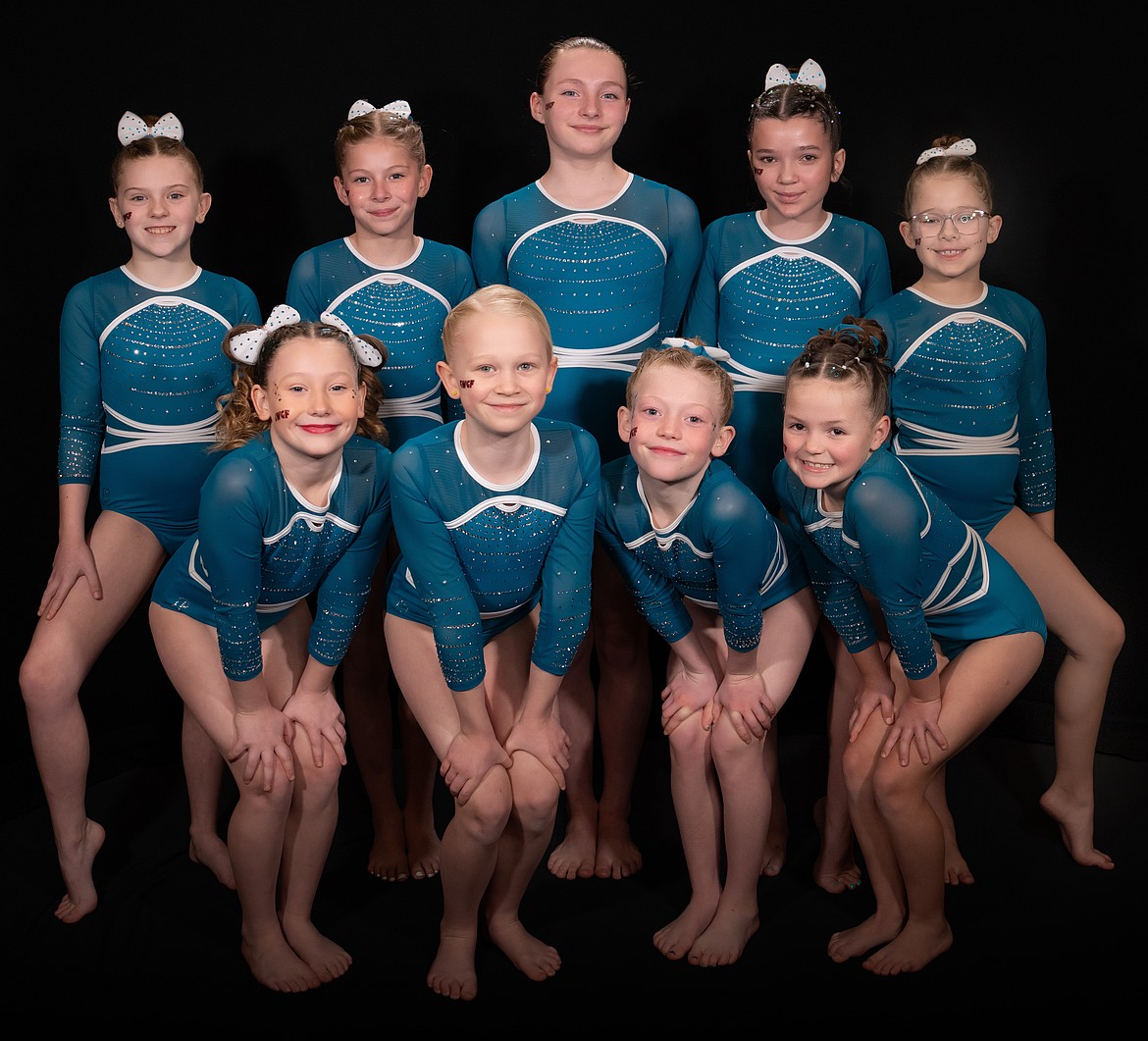 Courtesy photo Avant Coeur Gymnastics Level 4s took 2nd Place Team at the Great West Gym Fest last weekend at The Coeur d'Alene Resort. In the front row from left are Paisley Moore, Abba Dellara, Lala Underdahl and Shay Bridges; and back row from left, Avery Brown, Vida Wohletz, Ava Wissman, Isla Moore and Harbor Romanosky.