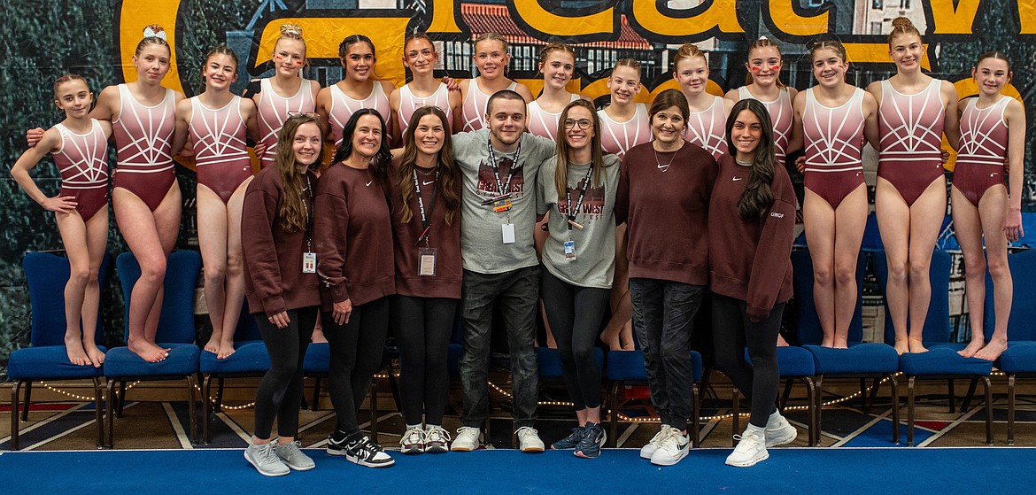 Courtesy photo Avant Coeur Gymnastics Xcel Golds took 4th Place Team at the Great West Gym Fest last weekend at The Coeur d'Alene Resort. In the front row from left are Katy Grantham, Lacey Bitnoff and Venice Crawford; second row from left, Amy Edgerly and Kaitlin Calderon; and back row from left, Adelyn Etheridge, Sydney D'Avanzo, Bella Nivison, Elsie Frost, Emily Good, Everly Reed and Ella Stone.