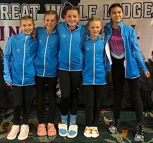 Courtesy photo GEMS Athletic Center Silver Team competed in the Great Wolf Lodge Invitational gymnastics competition Feb. 21-22 in Centralia, Wash. From left are Olivia Butcher, Gwyneth Ragan, Maci Schirado, Cora Ragan and Elianna Matthews.