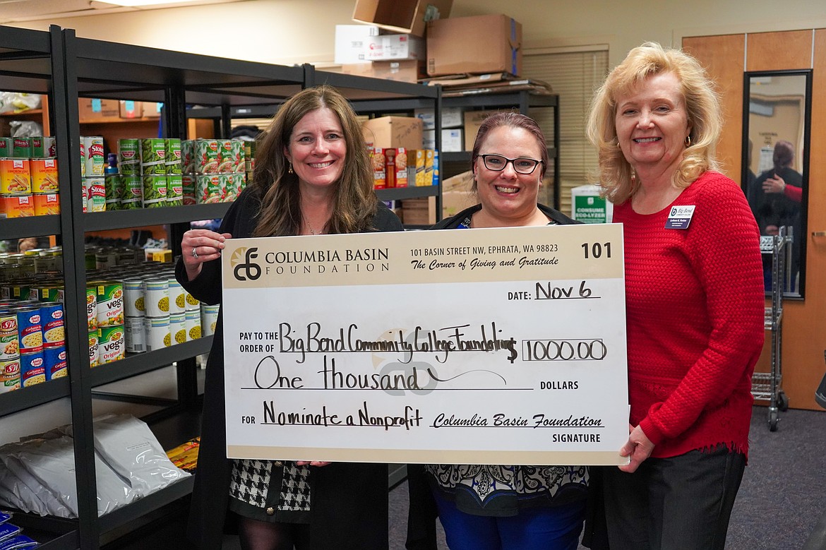 From left: Corinne Isaak, Columbia Basin Foundation executive director, presents Workforce Education Services Benefits Navigator Tara White and BBCC Foundation Executive Director LeAnne Parton with a donation for $1,000 in 2024. The BBCC Foundation received a grant from the Columbia Basin Foundation this spring as well.ARTICLES BY JOEL MARTIN