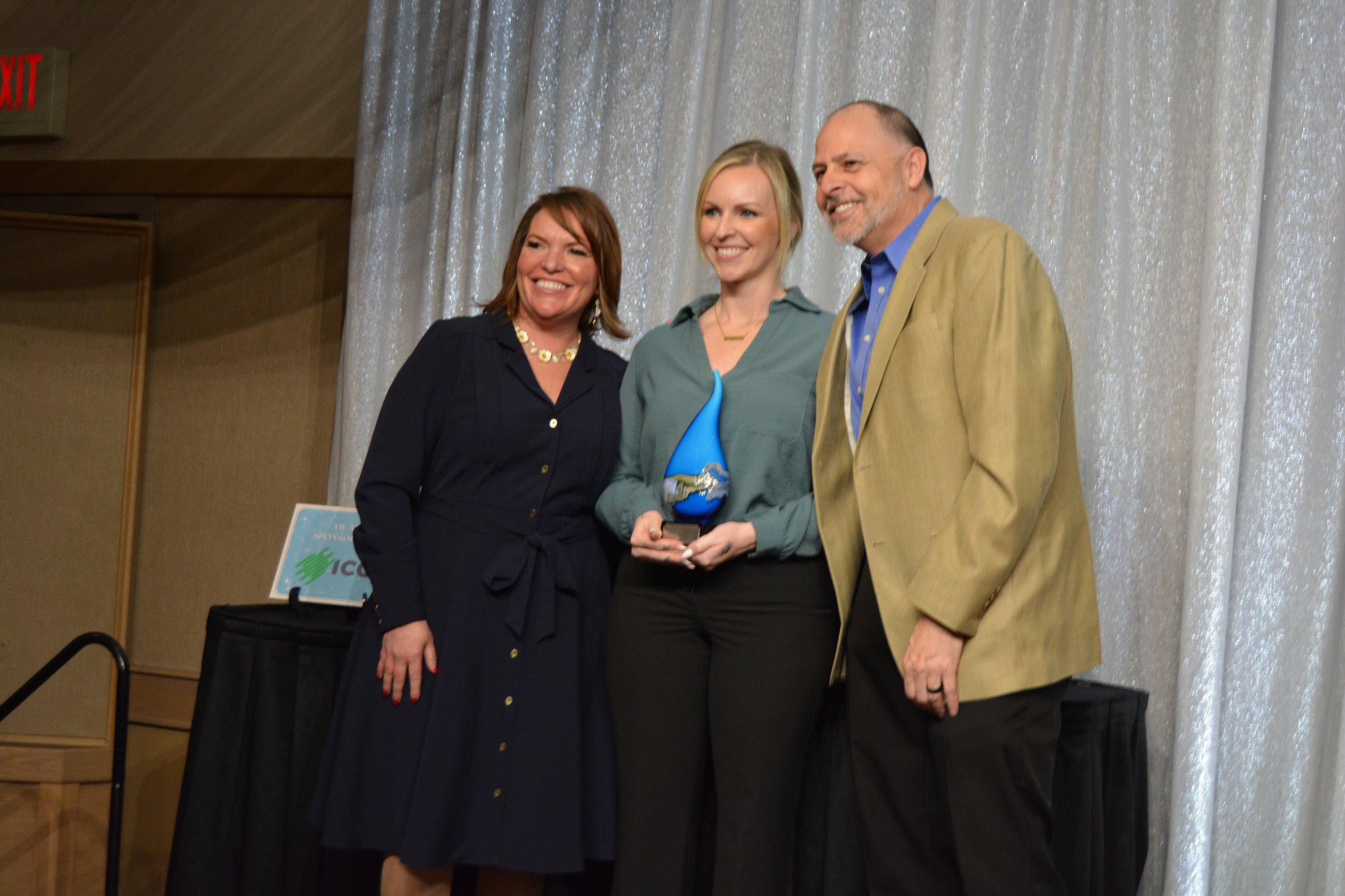This year’s Volunteer of the Year recipient FaceTimed into the event from a plane as Tonya Myers held up a phone with her husband, Larry Myers, to accept the award on his behalf.