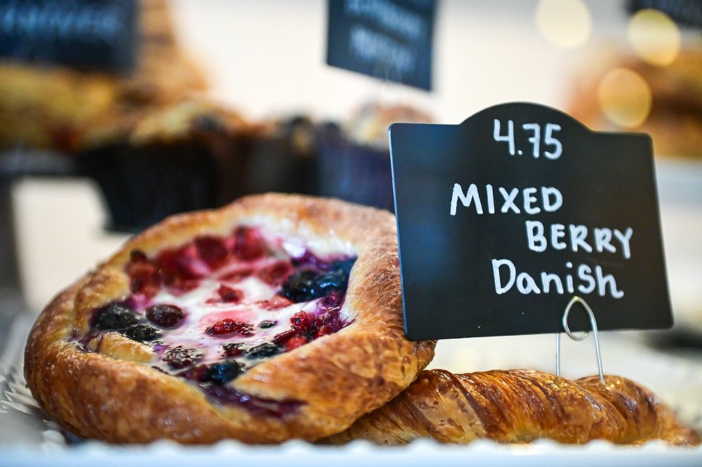 The storefront has also grown to accommodate an ever-increasing number of customers. After purchasing the building on Main Street, Grimm and Bjornson spent the early months of 2020 redesigning the storefront. They replaced the ceiling, the floor and most of the machinery in the kitchen and added a seating area where patrons could relax while sipping their morning coffee. New display cases showcased the array of pastries Bjornson had perfected in the years since the bakery opened.
