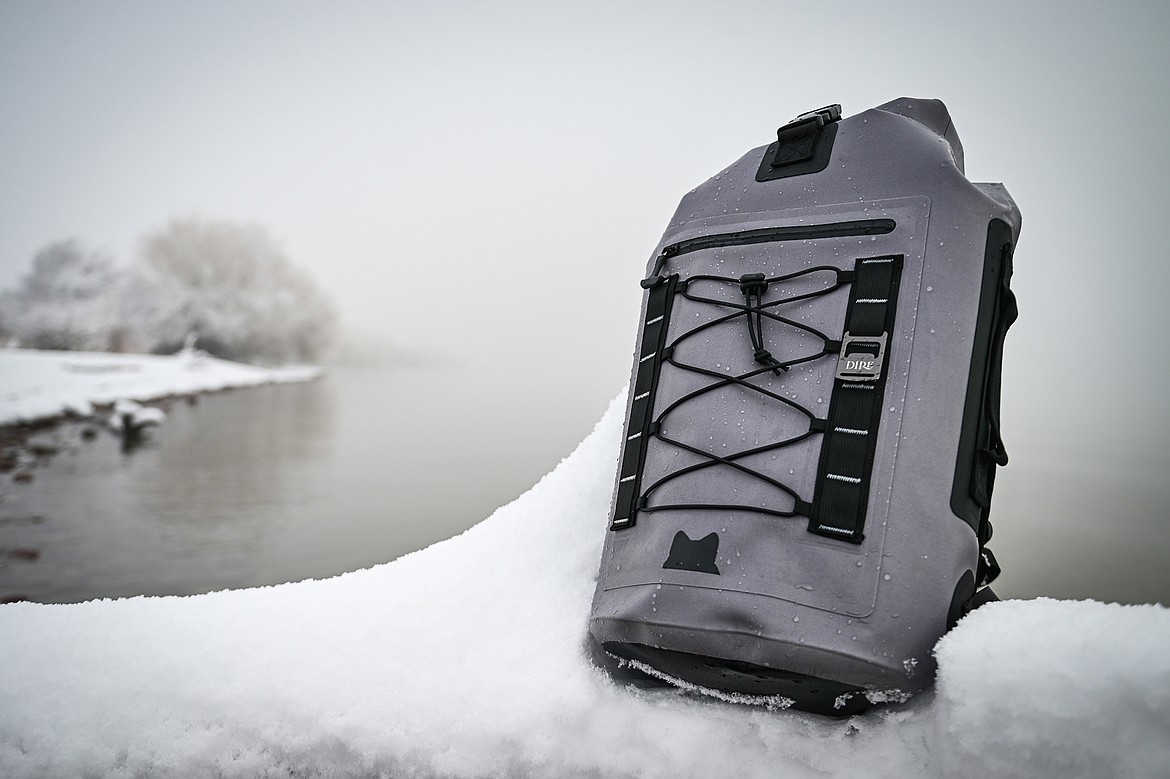 After three years of research, development and sourcing sustainable materials, Dire Design Haus released its flagship product, the Drikon backpack. The 100% waterproof backpack is a grey, 30-liter drybag with pockets, straps and reinforced Drikon material, which Riner trademarked this year.