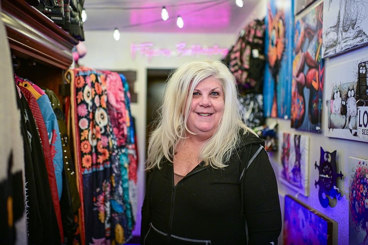 Those who visit Booher for her accounting services will walk through her new boutique on the way to her office. It’s called 406 Underground, featuring a selection of black, crystal studded T-shirts and a wall of dangling earrings.