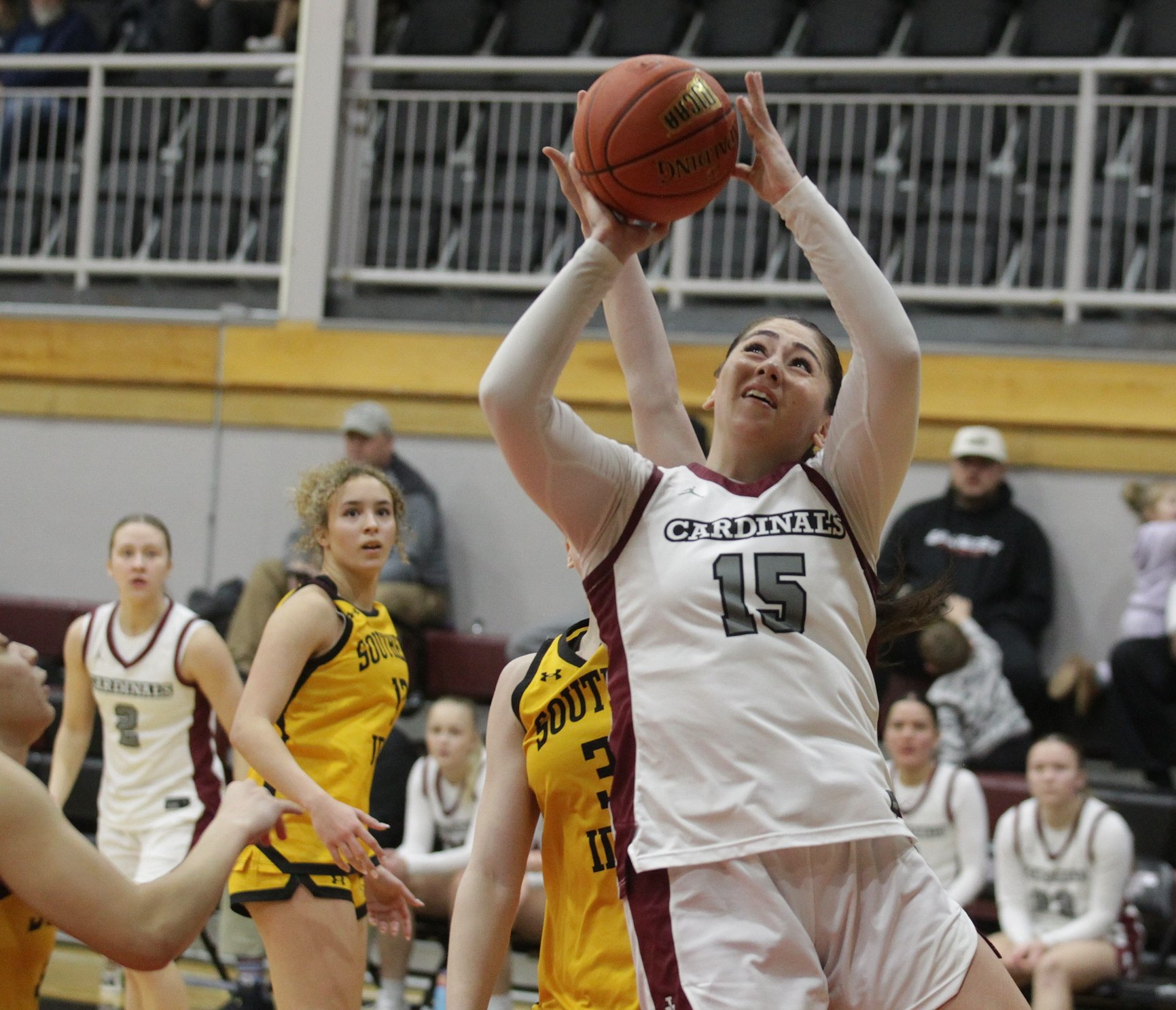 WOMEN: Freshman Kaytie Aanstad hit a jumper to give the Cardinals a 10-9 lead before the Golden Eagles went on a 17-3 run.