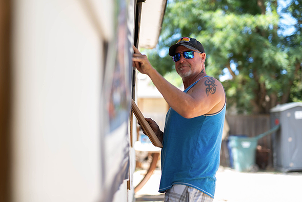 Jessica Gehl takes a break from patching paint in July during a Coeur d'Alene backyard renovation that will soon appear on the "Ask This Old House" TV program on PBS.