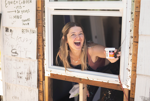 Jessica Gehl takes a break from patching paint in July during a Coeur d'Alene backyard renovation that will soon appear on the "Ask This Old House" TV program on PBS.