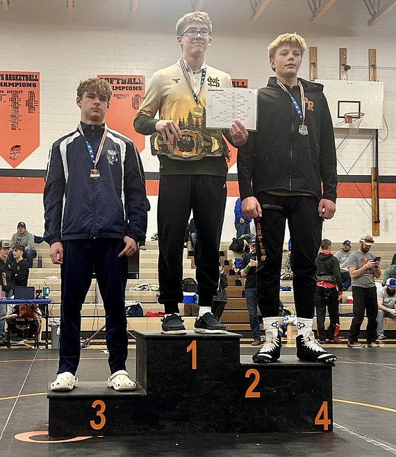 98 (round robin) — 1, Justin Hopkins, Priest River. 2, Damen Therrien, Bonners Ferry. 3, William Albano, Thompson Falls. 106 (round robin) — 1, Grady Caudill, Priest River. 2, Levi Holbrook, Priest River. 113 (round robin) — 1, Tadhg McLaimtaig, Priest River. 2, Andy Ussery, Colville. 3, Jonathan Toyias, Thompson Falls. 120 — Weston Block, Thompson Falls, p. Ty Scott, Colfax, 1:40. 126 — Liam Pettit, Priest River, d. David Harbison, Priest River, 7-0. 132 — Cameron Mathia, Colfax, p. Kaden Woodall, Kootenai Classical, 0:29. 138 — Bryce Davis, Colville, p. Cooper Phillips, Colfax, 0:31. 144 — Kelby Harvey, St. Maries, tf. Bill Rapier, Priest River, 3:27. 150 — Zach David, St. Maries, tf. Trent Sellers, Colville, 19-3. 157 — Amado Stewart, St. Maries, d. Alex Matusik, Reardan, 9-3. 165 — Aiden Yearout, St. Maries, p. Joel Burris, Colfax, 1:40. 175 — Gaige Johnson, Bonners Ferry, p. Liam Pallister, Thompson Falls, 5:35. 190 — Julian Moffit, Lakeside, p. Zack Sotin, St. Maries, 0:37. 215 — Darien Ratzlaff, Priest River, tf. Kristoffer Brusseau, St. Maries, 18-1. 285 — Taylor Dodd, Bonners Ferry, p. Dominick Kager, Lakeside, 1:21.