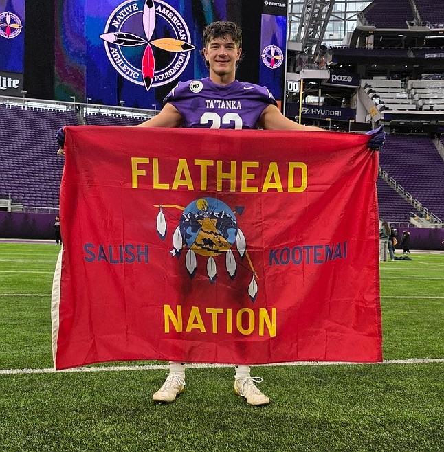 One of those athletes was senior Polson standout and Confederated Salish and Kootenai tribal member Cody Haggard. With the flag of his tribe draped over his back, he prepared for the ensuing drives of a game that only a few select athletes will ever have the honor of attending: the Native All-American Football Game.