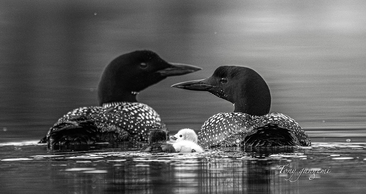 He watched the young loonlet ride its parents back. He watched it grow larger and captured images of its juvenile plumage slowly falling off.