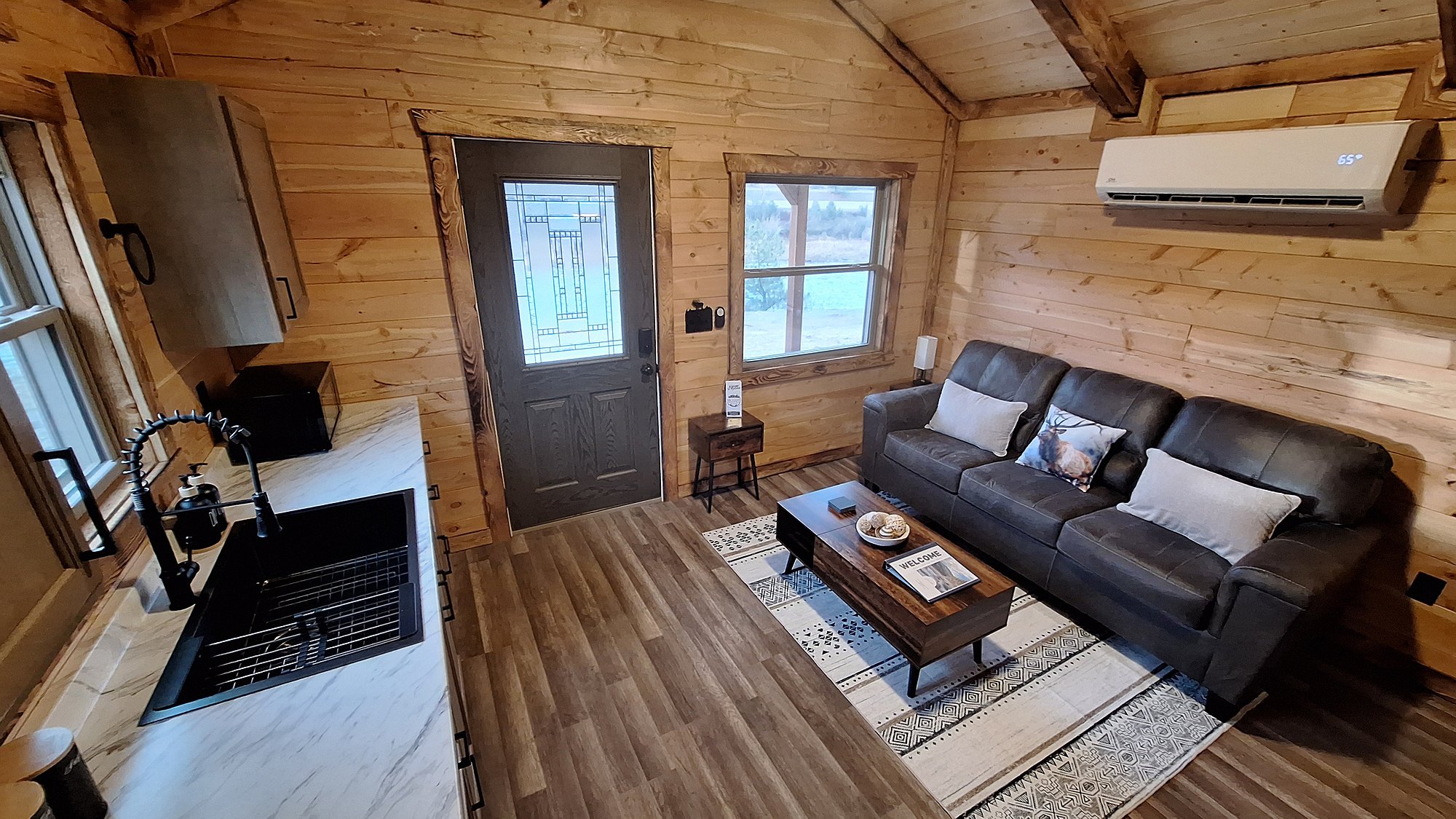Each of the five cabins are named after Montana critters -- deer, elk, wolf, moose and bear -- and each shares the same cozy floor plan with one comfy bedroom, one bathroom, a kitchen, and a living room with a sofa sleeper, easily hosting up to four guests.