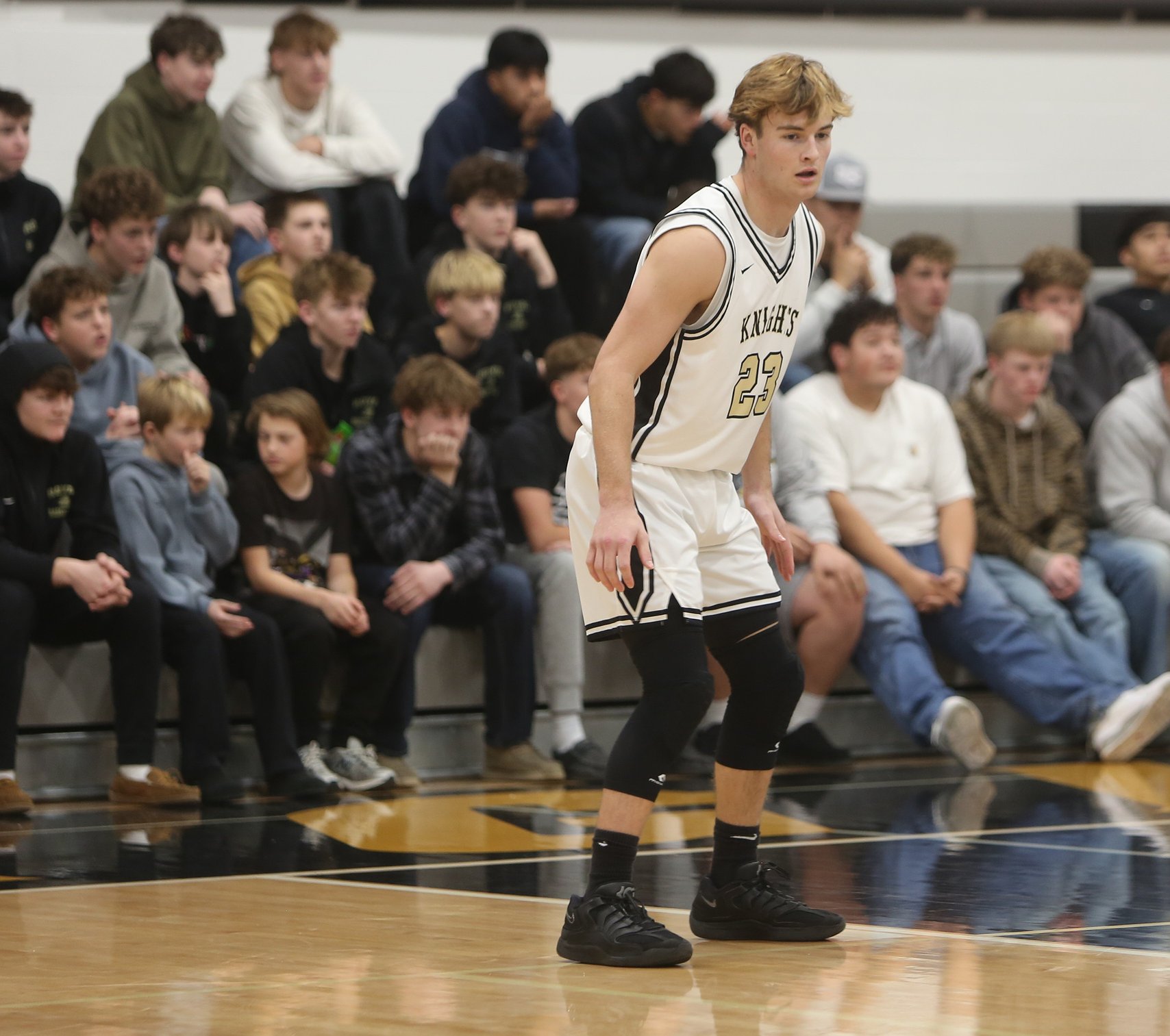 The Knights controlled the game from the start, running zone defense and putting the ball in the net on offense. Their rhythm on both ends allowed them to outscore the Bears 46-23 in the first half. They continued their dominance in the second half to secure the win behind Grant Wardenaar’s 40-point performance.
