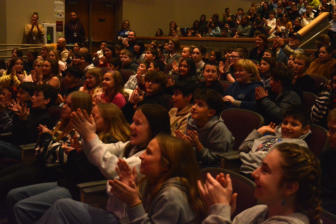 He impressed upon the packed auditorium of fifth graders to trust their hearts rather than go along with the crowd, even if things are difficult.