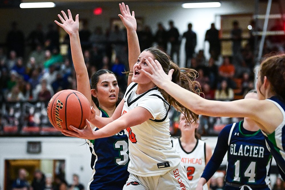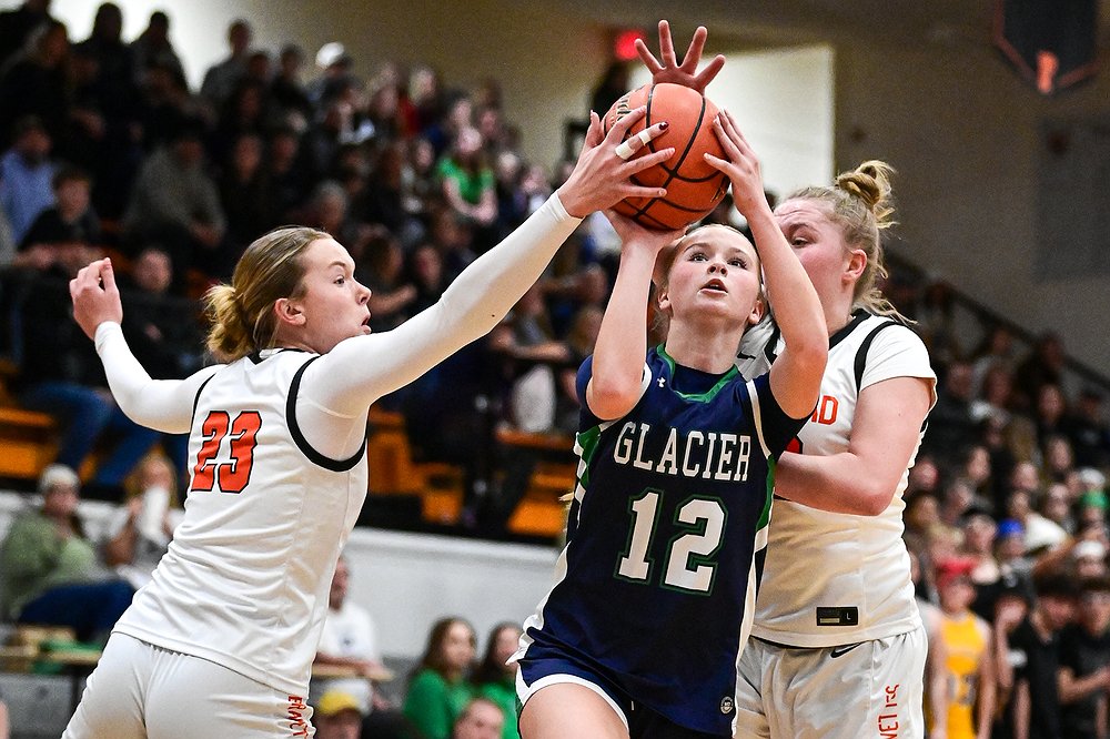 With the clock running in the fourth, Karley Allen — who was held in check most of the night — knocked down a pair of threes and finished the night with 12 points to lead Glacier.