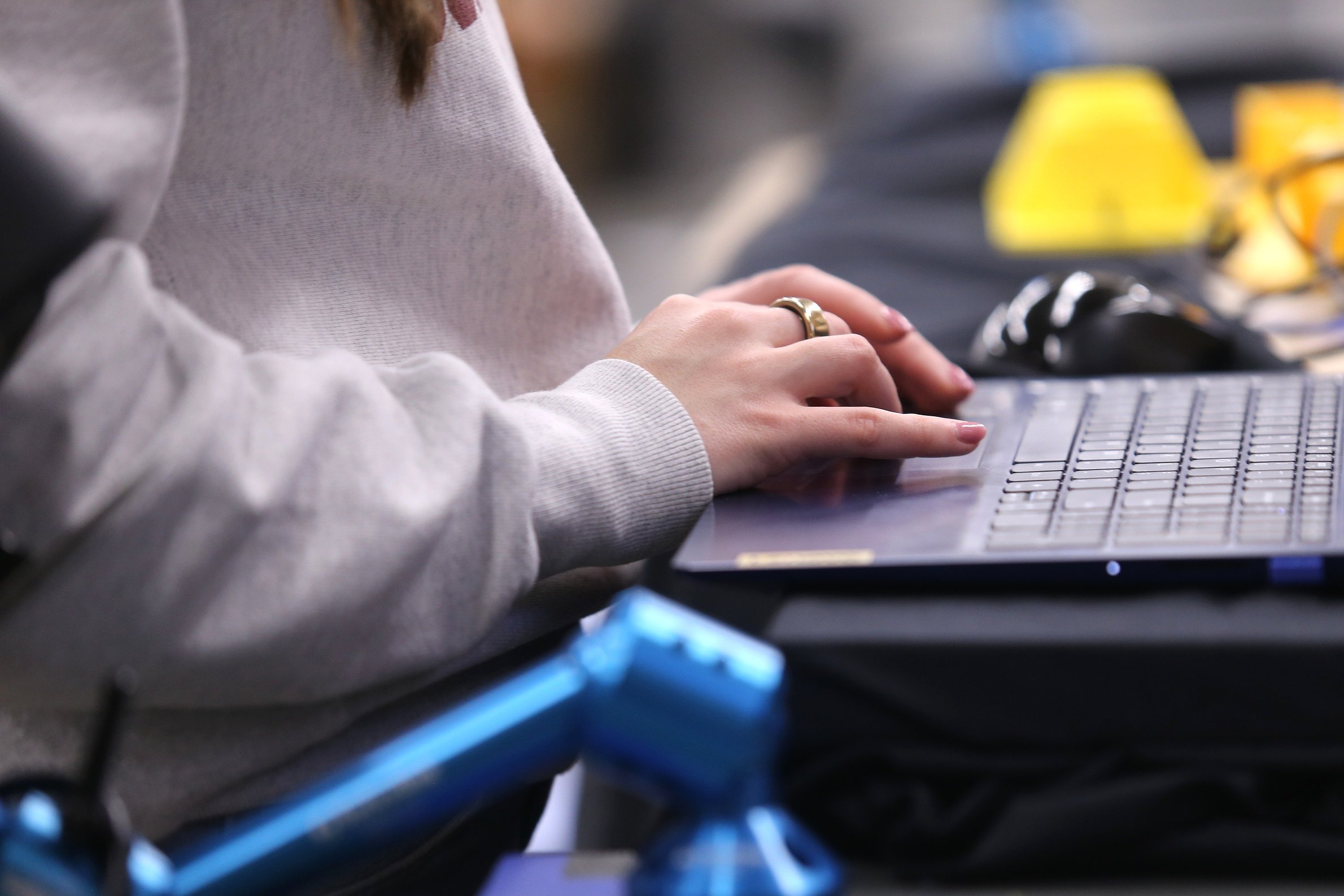 The shared lab space in the Hedlund Building is also a home base for fellows like Lacey Bowden, who is studying for a master’s degree in computer science at University of Idaho Coeur d’Alene.