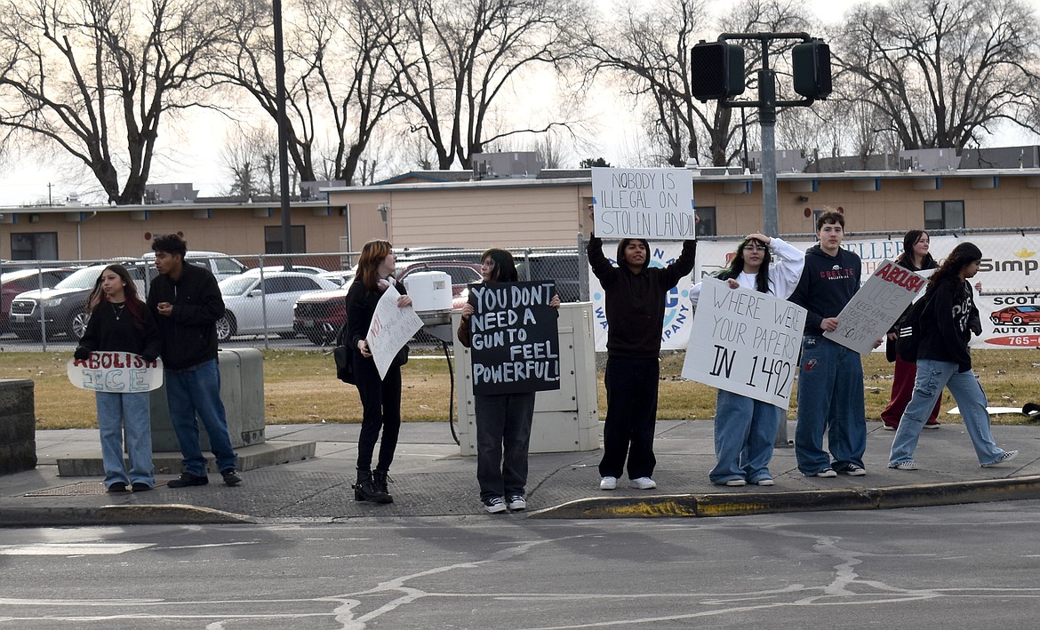 MOSES LAKE — About 80 students walked out of Moses Lake High School and Vanguard Academy on Tuesday afternoon to protest actions by Immigration and Customs Enforcement. The students took up signs and demonstrated at the intersection of East Nelson Road and South Pioneer Way.