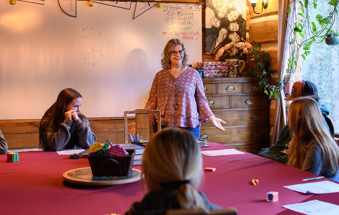 Tucked away in the wilderness, with a homey feel, away from the fluorescent lights, noise, and sometimes chaotic environment of public schools, is the home of John and Connie Doty, where 19 students learn at Flathead Valley Academy.