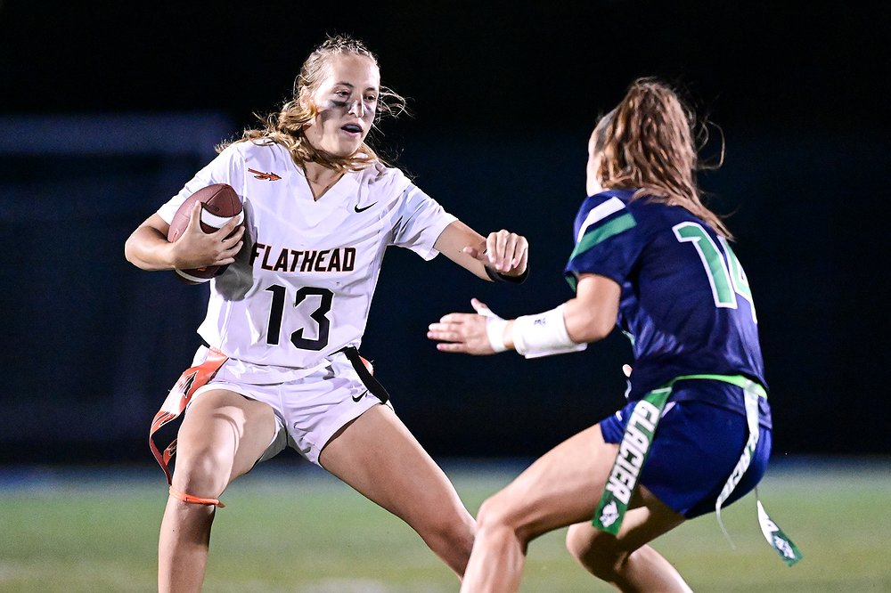 Going into a pair of home duals Thursday with Missoula’s Hellgate and Big Sky programs, Kay is 20-1 on the mat this season. Last fall, when the Bravettes finished third at the State AA flag football tournament, she threw for 1,540 yards and 20 touchdowns in 13 games, and ran for 357 yards and another six scores.
