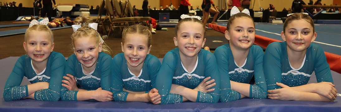 Courtesy photo Avant Coeur Gymnastics Level 6s at the Wine Country Classic in Kennewick, Wash. From left are Lydia Mohr, Bow Babowicz, Aella Stewert, Harper Loscalzo, Avonlea Cotten and Brooklyn Adams.