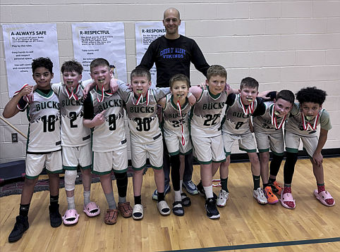 Courtesy photo The North Idaho Bucks fourth grade boys basketball team went 4-0 over the weekend to win the championship at the Sandpoint Future Invitational. In the front row from left are Ben Bell, Camden Galvin, Mason Scholten, Graham Brown, Ethan Braga, Declan O'Neil, Estes Hartley, Carter Birdsall and Joey Terracciano; and rear, coach Troy Braga. Not pictured are assistant coaches Scott Brown and Josh Hartley.
