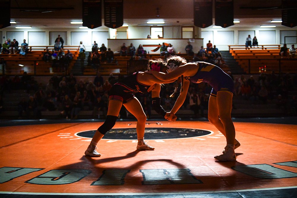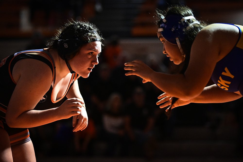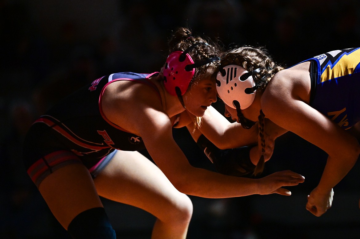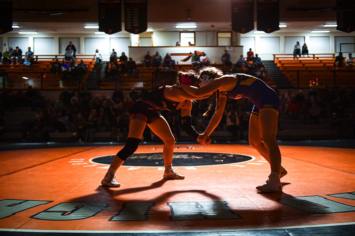 Flathead's Gracie Tryon wrestles Missoula Big Sky's Preslie Lamma at 125 lbs. at Flathead High School on Thursday, Jan. 29. (Casey Kreider/Daily Inter Lake)