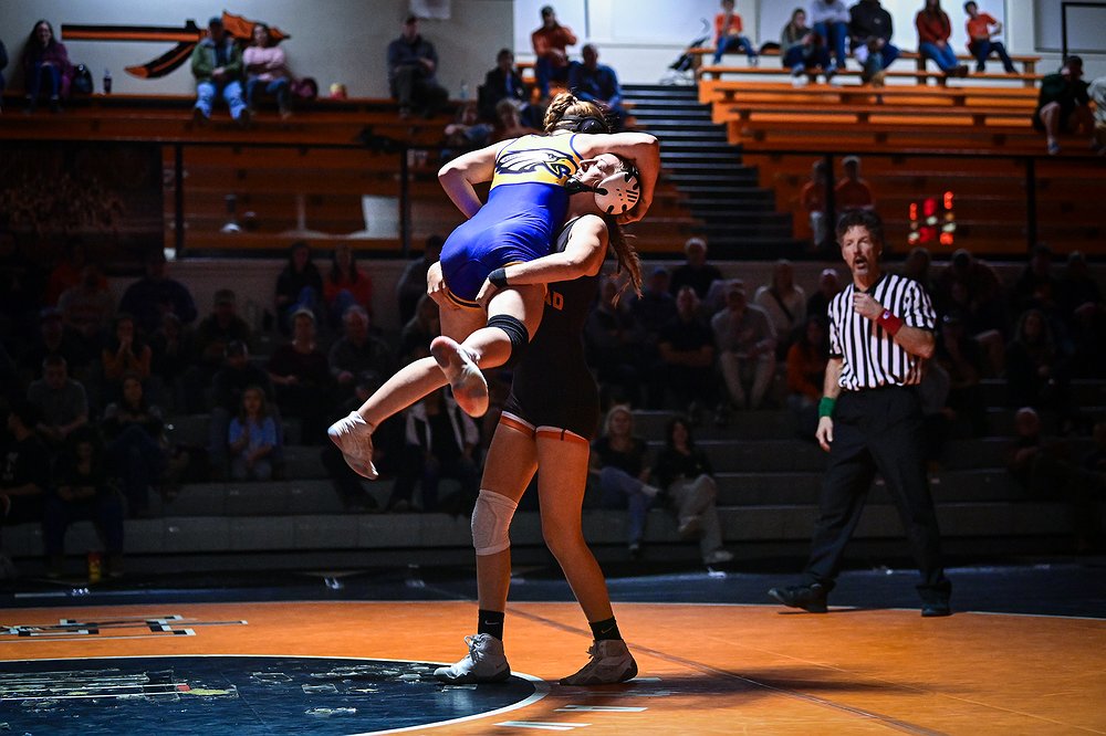 115 — Hailey Fibacker, Big Sky p. Sophia Torgerson 1:39. 120 — Bella Downing, Flathead p. McKenzie Harrow 1:18. 125 — Presley Laramie, Big Sky dec. Gracie Tryon 6-1. 130 — Julia Kay, Flathead p. Nicole Roberts :50. 135 — Kiera Lackey, Flathead p. Kadi Smith :55. 140 — Addison Clixby, Big Sky p. Alisha Coots 2:25. 145 — Haley Wilson, Flathead p. Kelly Hart 1:55. 190 — Rachel Vaughn, Big Sky p. Adi Cox :14. Flathead won at 100, 105, 155 and 170 via forfeit. Big Sky won at 110 and 235 via forfeit.