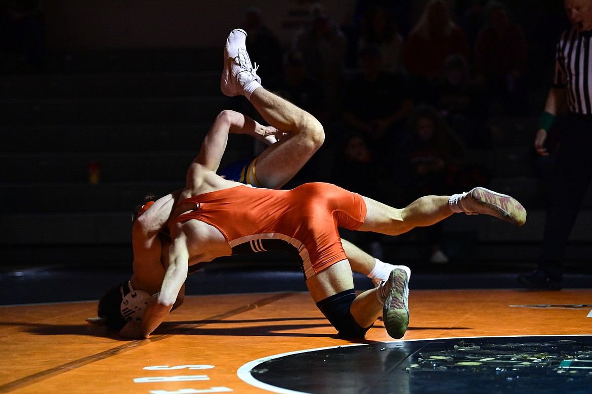 Miller, La Notte and LeDuc all secured their second falls of the evening against the Eagles as Flathead ran away with a 70-12 dual victory.