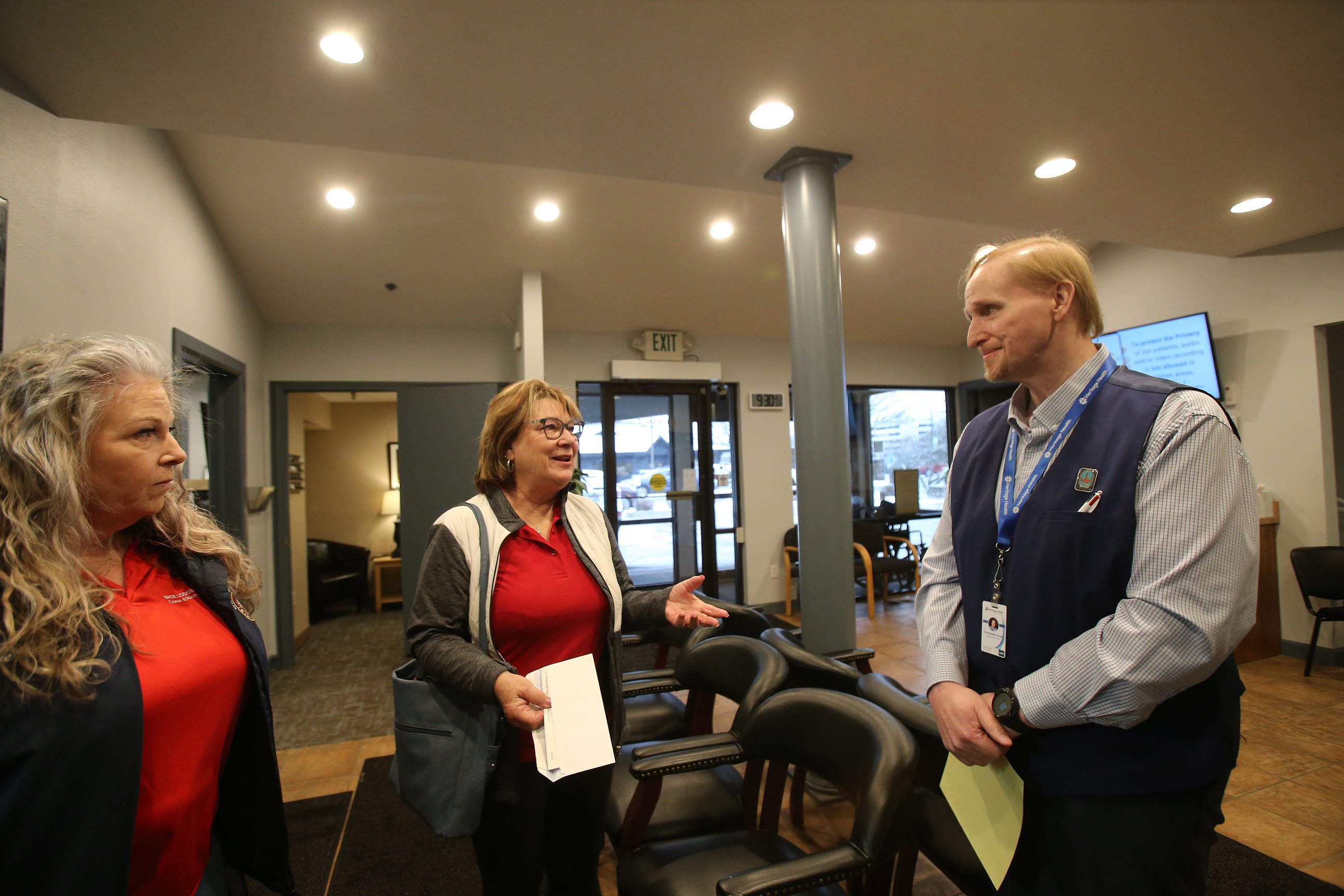 Coeur d'Alene Elks Esteemed Lady Knight Lynne Thomas, treasurer Fran Lara and member Trevor Thomas presented the check to Street Medicine Director Chris Green following a tour of the facility at 2205 Ironwood Place, where the program has operated since moving from its previous Harrison Avenue location in February 2025.