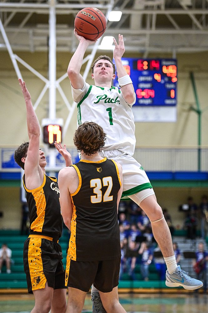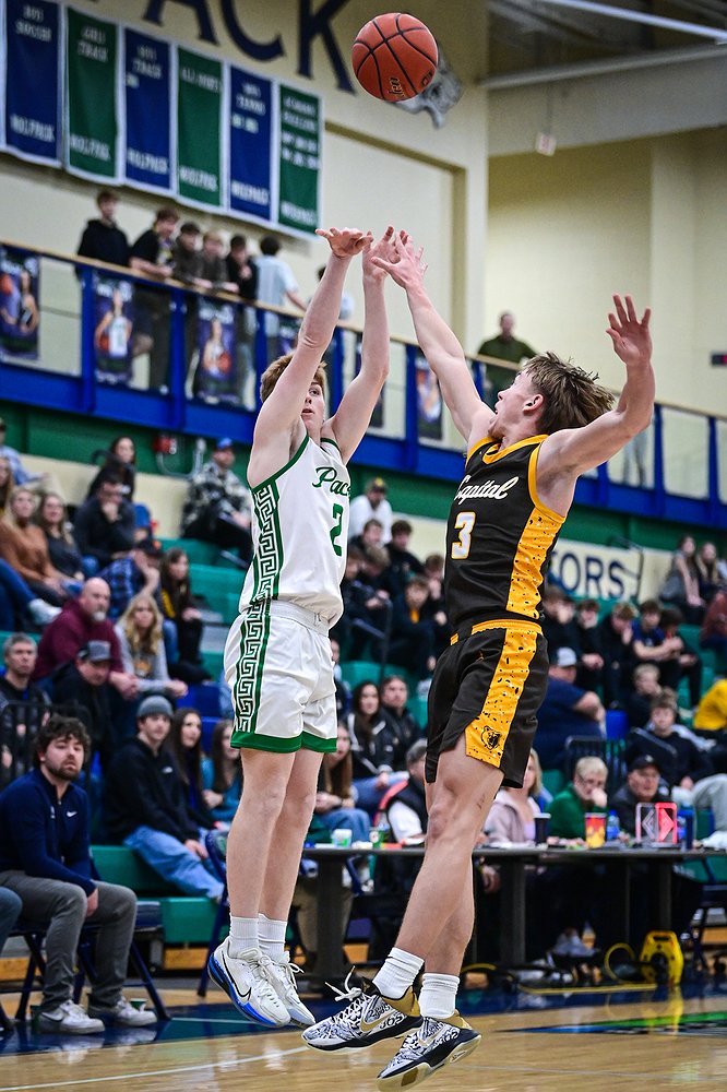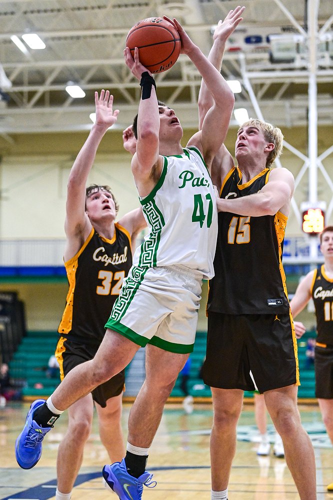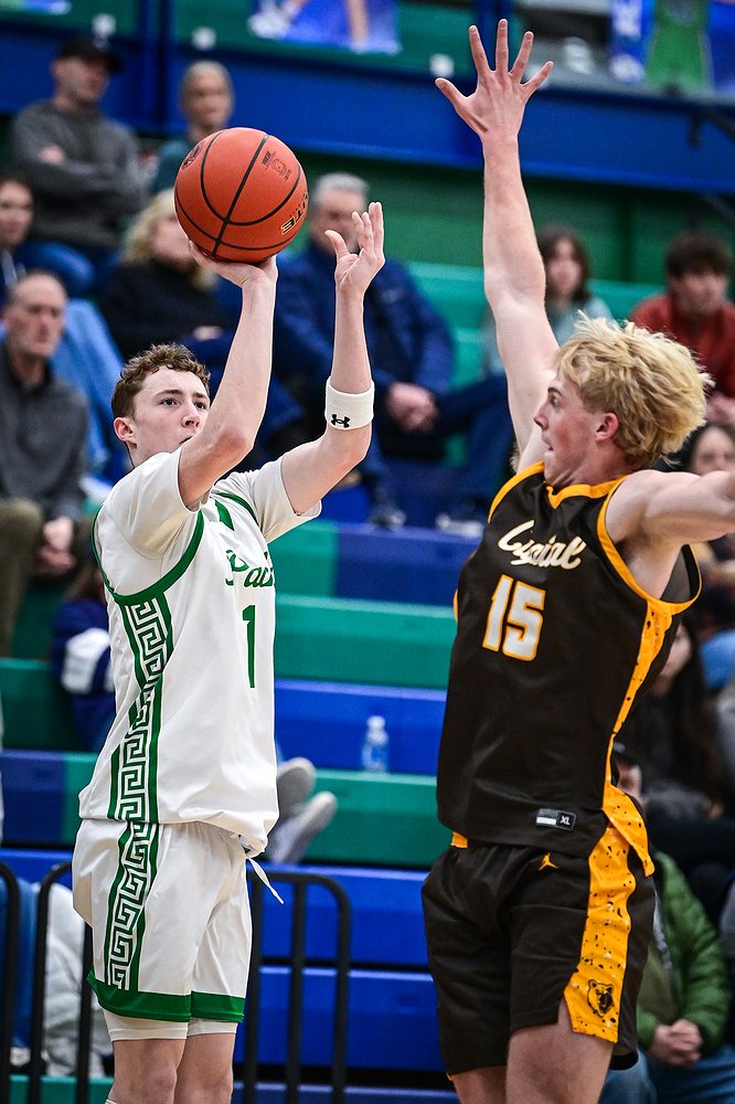 Kyle Bachmeier went 1 of 2 from the free throw line with seven seconds left to put Capital (7-4 overall, 4-2 in Western AA games) ahead 55-51. An Asher Knopik three just before the buzzer cut the deficit to one but with no time outs, the clock expired.