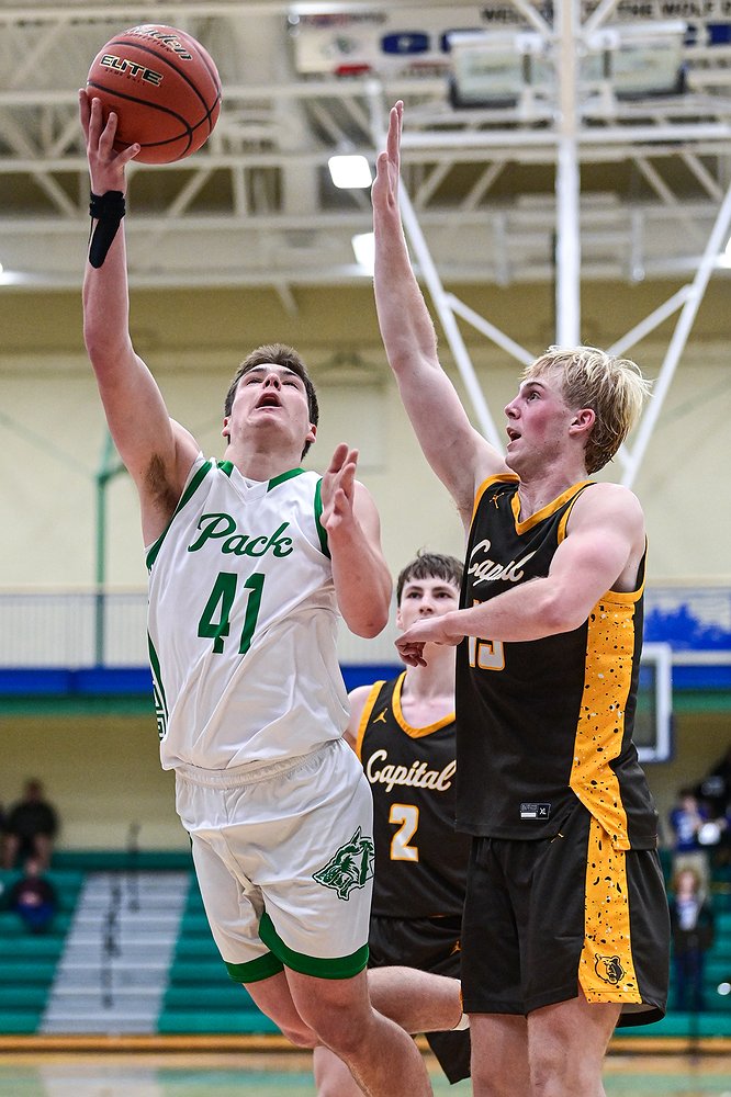 “Really proud of how our kids played. We really battled, left it all out on the floor,” Wolfpack coach Evan Epperly said. “Capital is a big team and we were giving up some height tonight, but our kids gave it all they had on the boards and defensively, defending the post. We did some good things offensively too.
