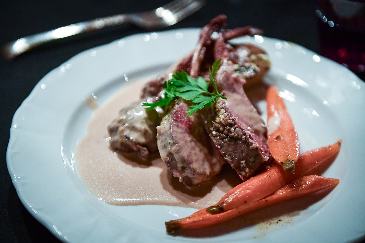 A dinner option of lamb chops with whiskey herb saute served on a bed of roasted potatoes and glazed carrots prepared by The Salty Calf at the Burns Night Supper, honoring the life and poetry of Scottish poet Robert Burns, held by the Flathead Celtic Society at Conrad Mansion in Kalispell on Saturday, Jan. 24. (Casey Kreider/Daily Inter Lake)ARTICLES BY HILARY MATHESON