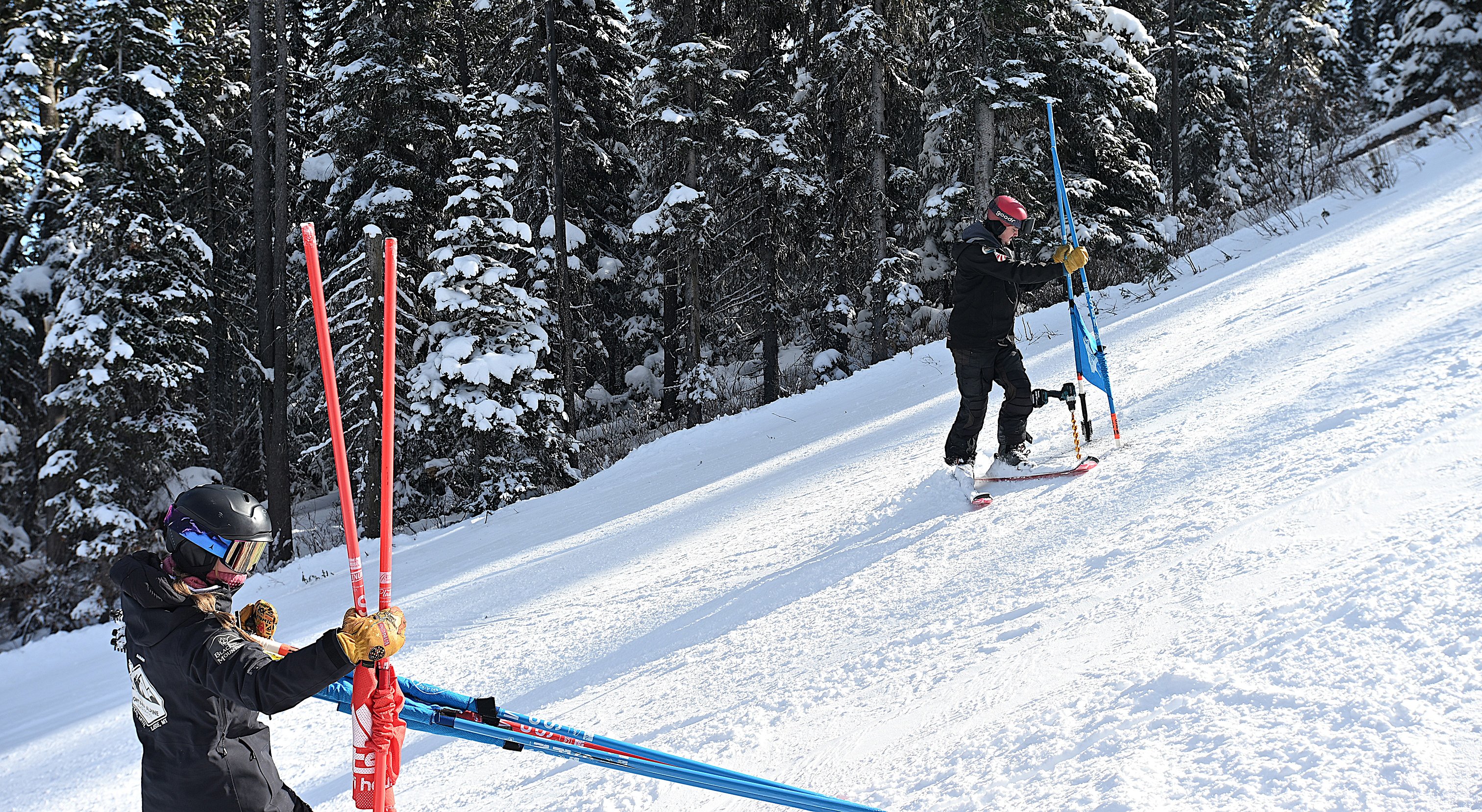 A clear blue sky hung over Blacktail Mountain Ski Area on a crisp Thursday afternoon in February as two Montana Alpine Race School coaches turned down the trail, stopping periodically to drill slalom gates into the snow.