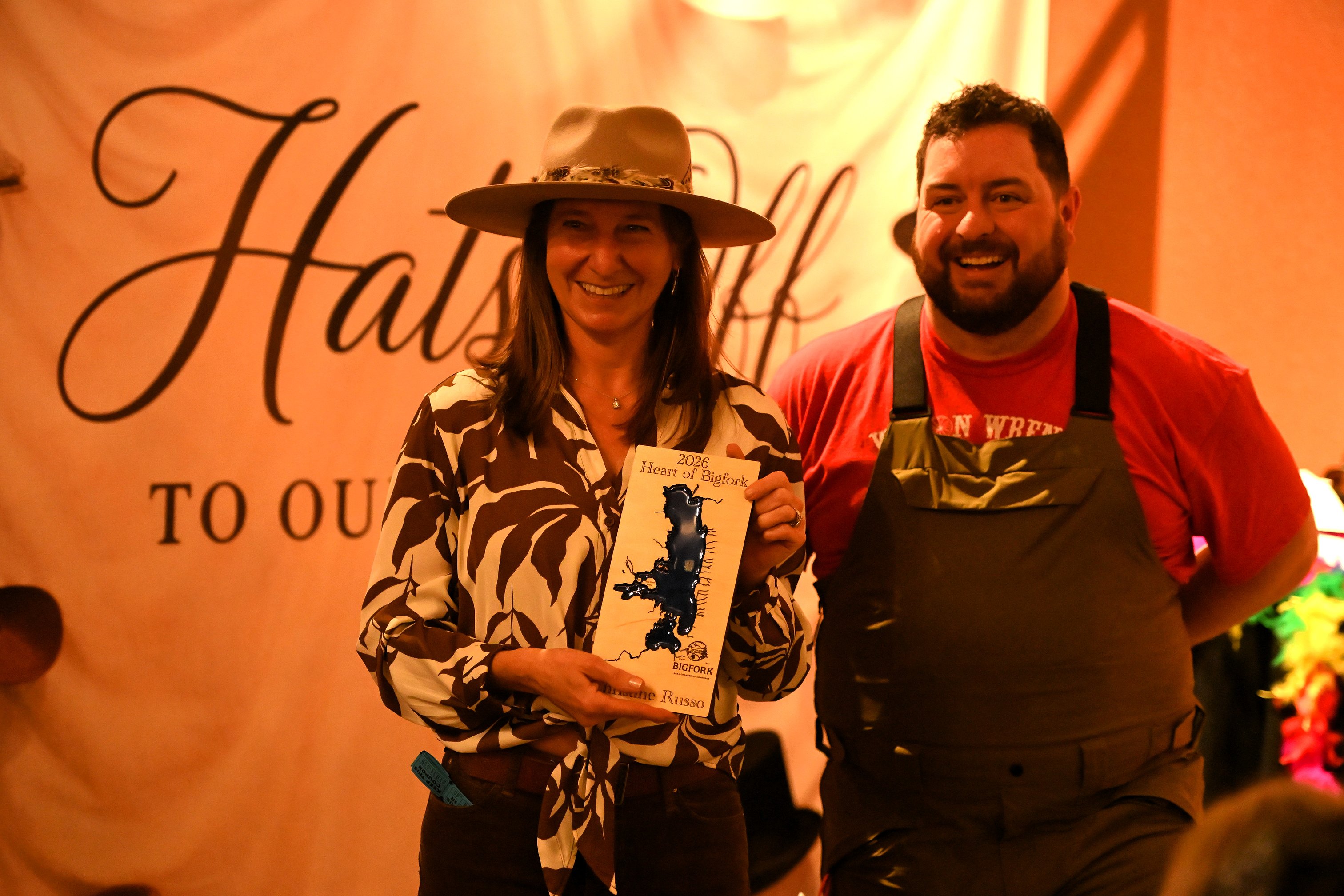 Christine Russo accepts the 2026 Heart of Bigfork award at the Bigfork Chamber of Commerce banquet on Wednesday, Feb. 25 at Andy's Crafthouse. (Matt Baldwin/Bigfork Eagle)