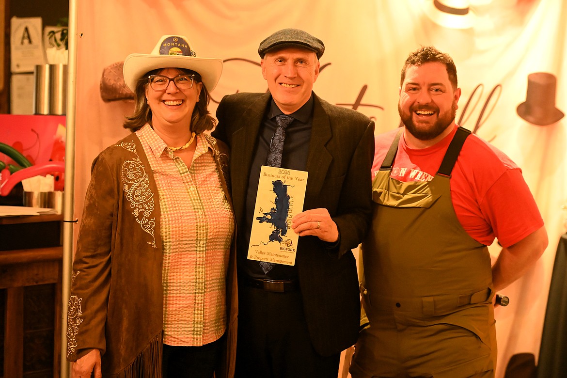 Valley Maintenance and Property Management owners Ry and Serena Keller accept the award for 2026 Business of the Year at the Bigfork Chamber's annual banquet on Wednesday, Feb. 25 at Andy's Crafthouse in Bigfork. (Matt Baldwin/Bigfork Eagle)