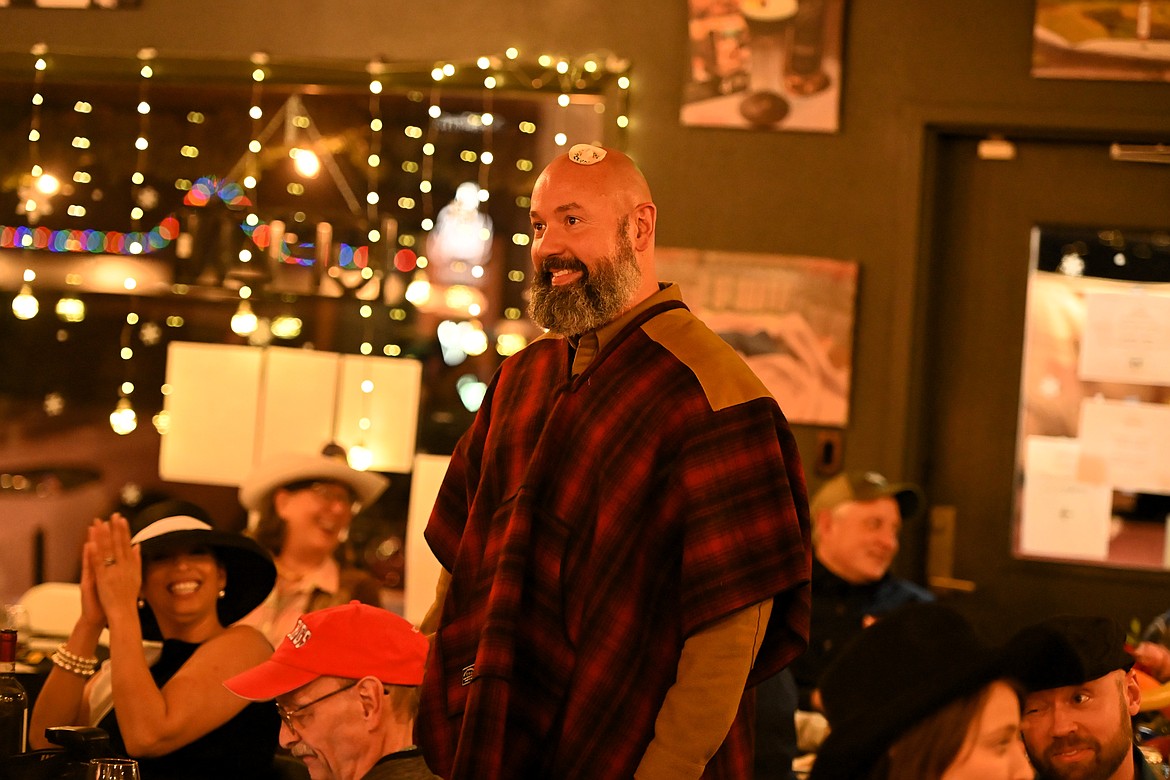 Aaron Whitten wins the hat contest at the Bigfork Chamber's annual awards banquet on Wednesday, Feb. 25 at Andy's Crafthouse in Bigfork. (Matt Baldwin/Bigfork Eagle)