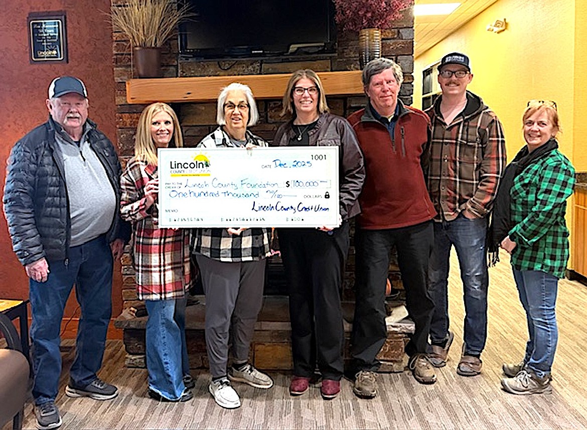 The Lincoln County Credit Union generously donated a $100,000 gift to the Lincoln County Community Foundation, which provides grants to local non-profit organizations. From left to right are Bernie Cassidy, LCCF Board Member, Betty Jo Wood, LCCF Board President, Jan Ivers, LCCU Board Member, Lindsay Beaty, LCCU President, Jon Reny, LCCU Board Chair, Andrew Selle, LCCU Board Secretary, and Devi McCully, LCCU Board Member.