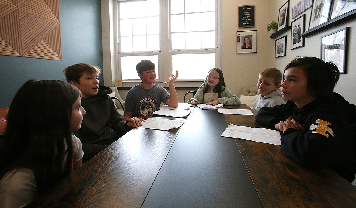Fifth graders have been researching Winton's past. Their research materials include essays written by students who attended Winton in the 1980s.