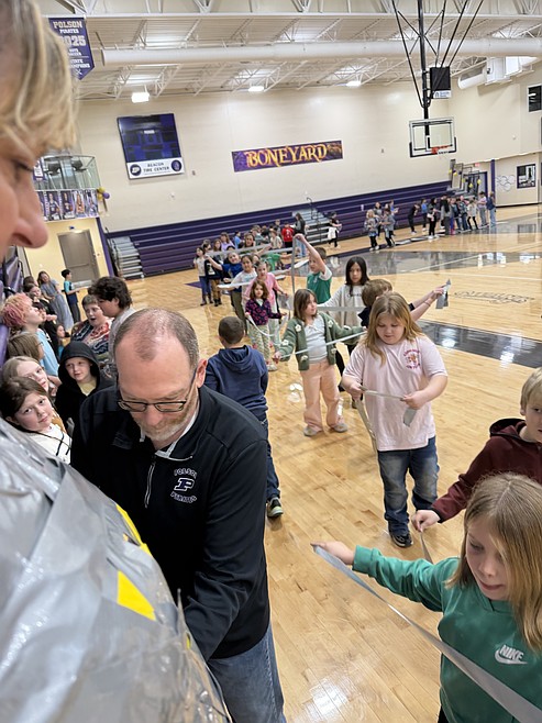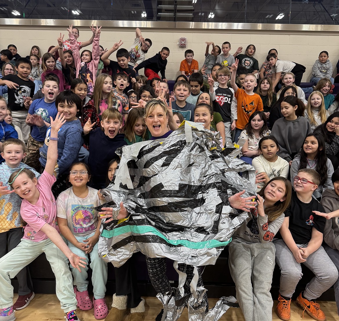 Kids at Linderman Elementary in Polson were able to stick it to principal Kristin Wilson last Friday. Or, rather, stick her to it in a duct-tape attendance challenge.