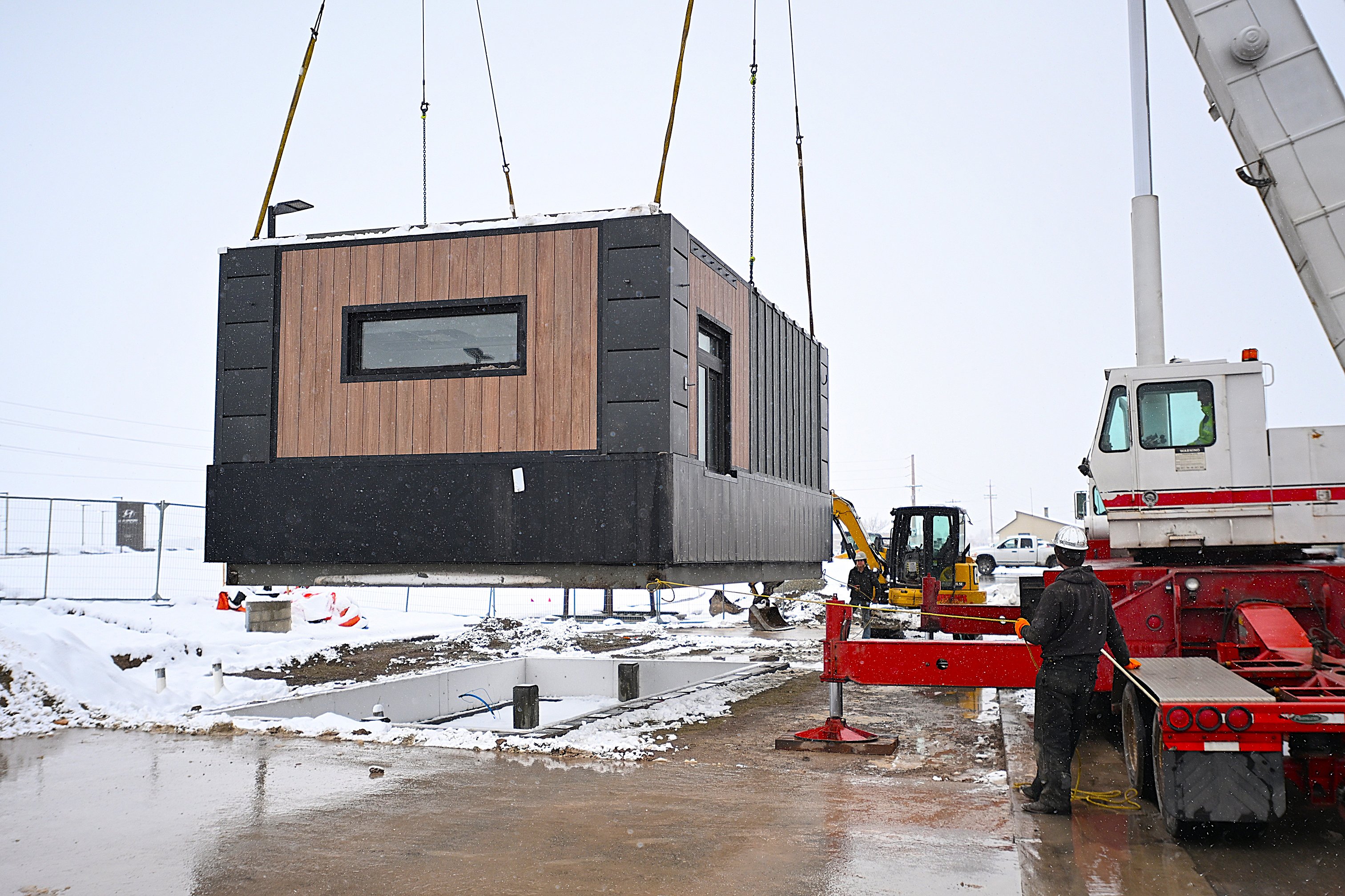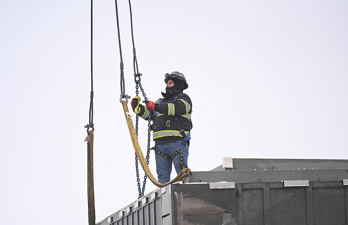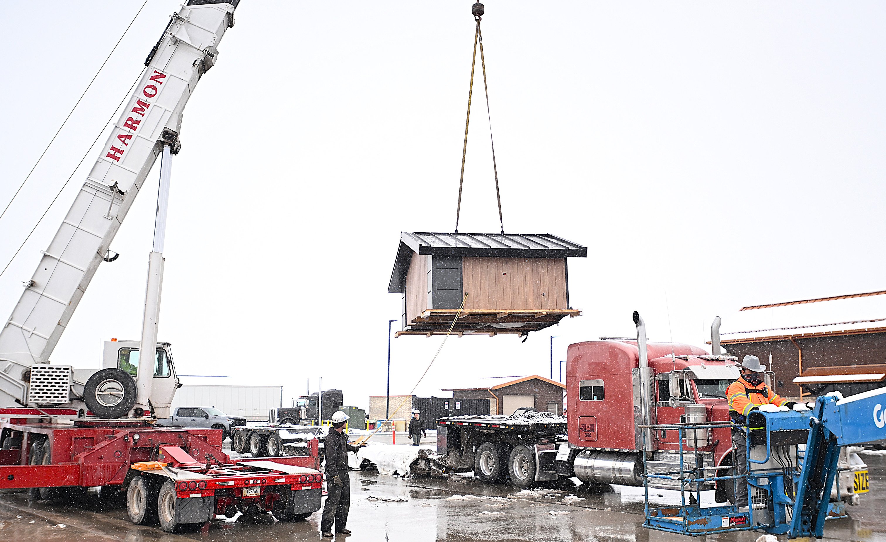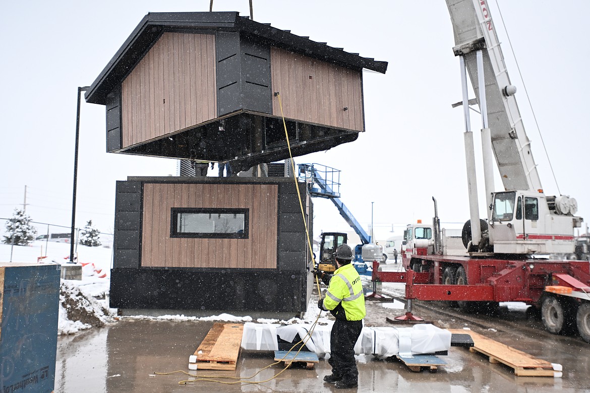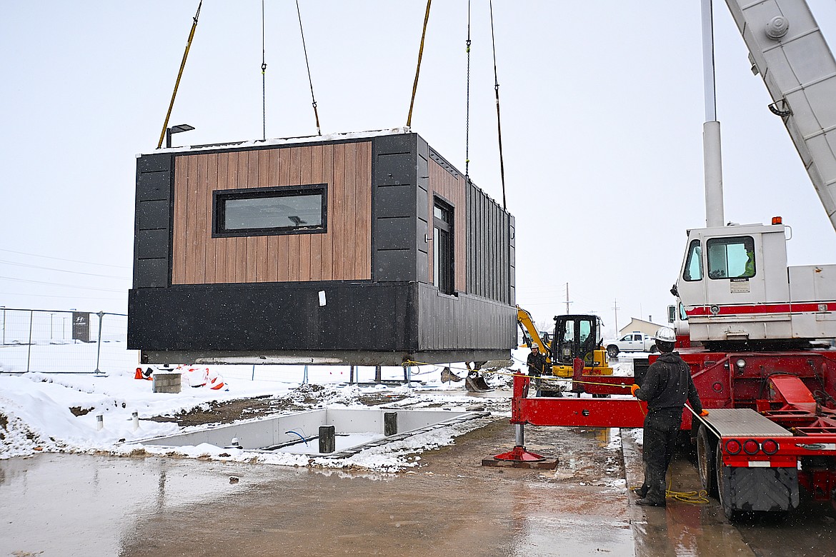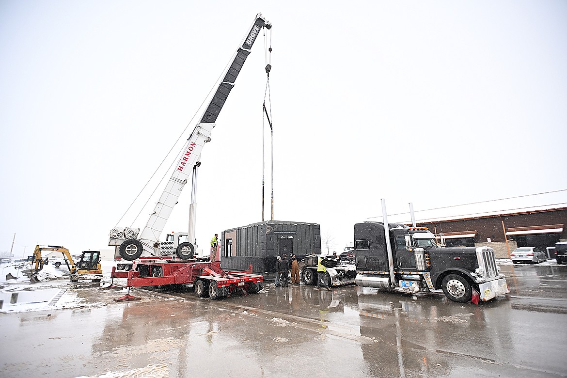 Motorists fueling up at the South Kalispell gas station off U.S. 93 on the snowy afternoon of March 13 caught a glimpse of a 13-ton structure resembling a shipping container being hoisted into the air by crane.