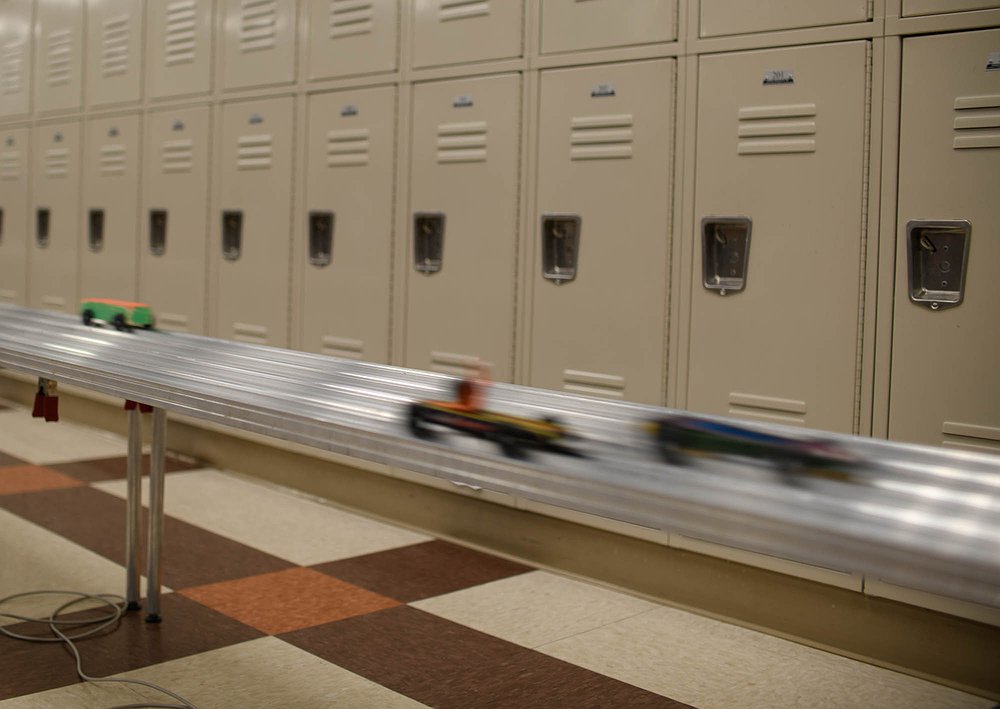 Pinewood cars fly to the finish