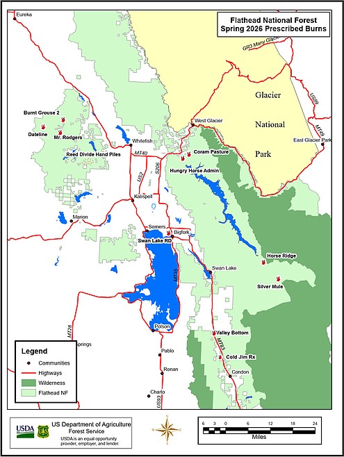 Flathead National Forest is planning prescribed fire operations this spring, pending all required approvals. This work may occur from March through June, as weather conditions allow. Prescribed fires reduce overgrown vegetation to help protect local communities, infrastructure and natural resources from uncharacteristically high severity wildfires.