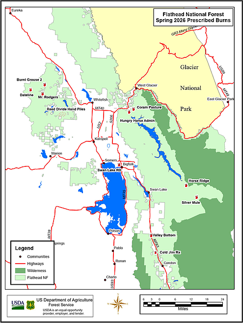 Flathead National Forest is planning prescribed fire operations this spring. The work may occur from March through June, as weather conditions allow.