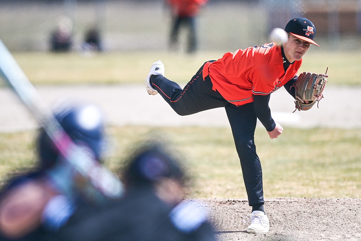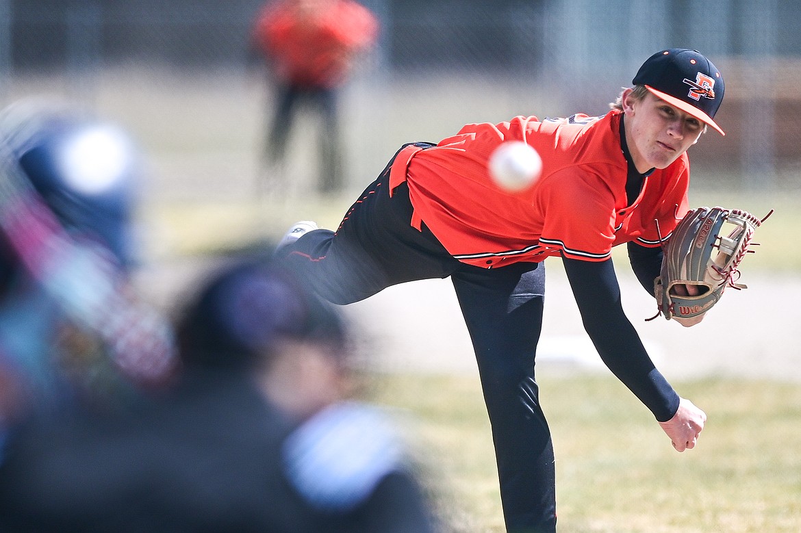 Flathead pitcher Miles Arrowsmith (2) delivers against East Helena at ABS Park on Thursday, March 26. (Casey Kreider/Daily Inter Lake)