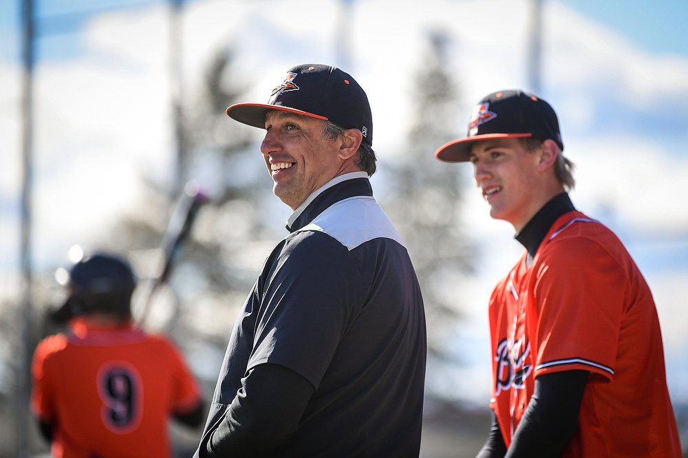 Flathead head baseball coach Rich Burland watches the action during a game against East Helena at ABS Park on Thursday, March 26. (Casey Kreider/Daily Inter Lake)